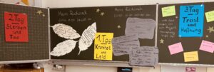 Am dritten Tag ging es um „Trost und Hoffnung“. Die Kinder schrieben Briefe, gestalteten Bilder und überlegten gemeinsam, wie man anderen in schweren Zeiten beistehen kann. Dabei wurde deutlich, wie feinfühlig und empathisch bereits Grundschulkinder mit diesen ihemen umgehen können, wenn man ihnen Raum und Zeit gibt.